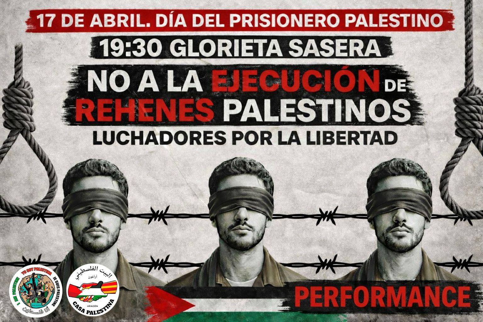 Día del Prisionero Palestino Viernes 17 de Abril - 19:30 Glorieta Sasera NO A LA EJECUCIÓN DE REHENES PALESTINOS Luchadores por la libertad Miles de rehenes palestinos sobreviven en celdas, bajo […] |