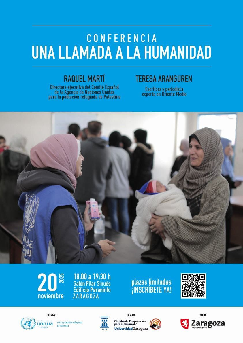 Conferencia "UNA LLAMADA A LA HUMANIDAD" De 18:00 a 19:30 en el Salón Pilar Sinués, Edificio Paraninfo de Zaragoza (Plaza de Basilio Paraíso, 4, 50004 Zaragoza) Plazas limitadas. Inscríbete ya: https://www.tickettailor.com/events/unrwaeduca/1927944 Conferenciantes: - Raquel Martí: Directora ejecutiva del Comité Español de la Agencia de las Naciones Unidas para la población refugiada de Palestina. - Teresa […] |