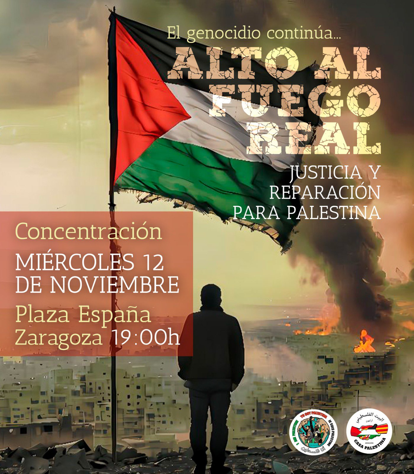 El genocidio continúa...¡ALTO AL FUEGO REAL! Justicia y reparación para Palestina. Todos los miércoles en Pza. España a las 19:00 h. |